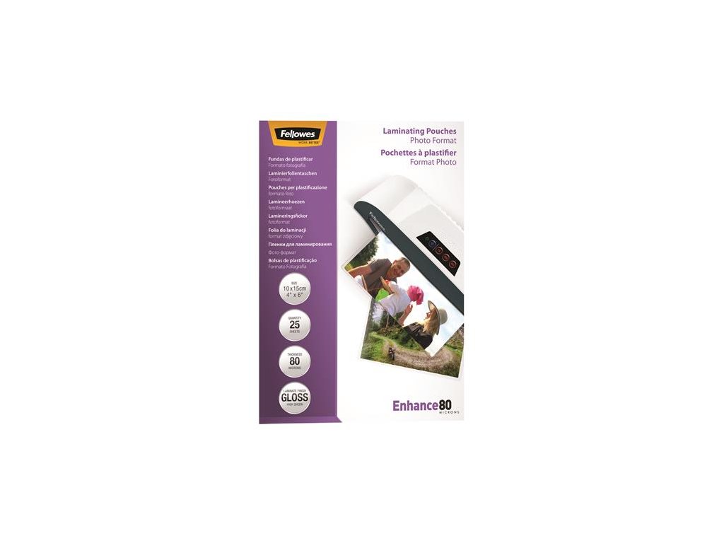 - rozmery: 100 x 150 mm - hrúbka: 80 µ - povrch: lesklý - použitie: za tepla - úroveň ochrany dokumentov: základná - predĺži životnosť vašich dokumentov - balenie: 25 ks/bal. - k laminovacím prístrojom Fellowes® vždy používajte Fellowes® laminovacie fólie!Dodatočné parametre
