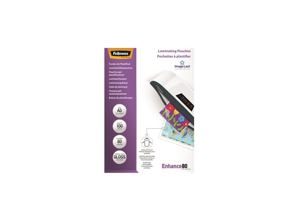 Laminovacia fólia za tepla, 80 mikr., A5, lesklá, 100 ks, FELLOWES