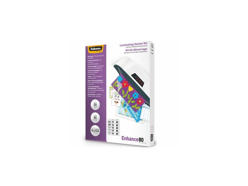 balenie obsahuje výber laminovacích fólií: 10 ks formátu A4 10 ks formátu A5 10 ks 20x25 cm 10 ks 13x18 cm 10 ks 10x15 cm - k laminovacím prístrojom Fellowes® vždy používajte Fellowes® laminovacie fólie!Dodatočné parametre