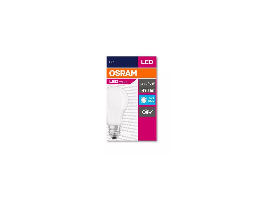 LED žiarovka, E27, guľa, A60, 5W, 470lm, 4000K (HF), OSRAM "Value"