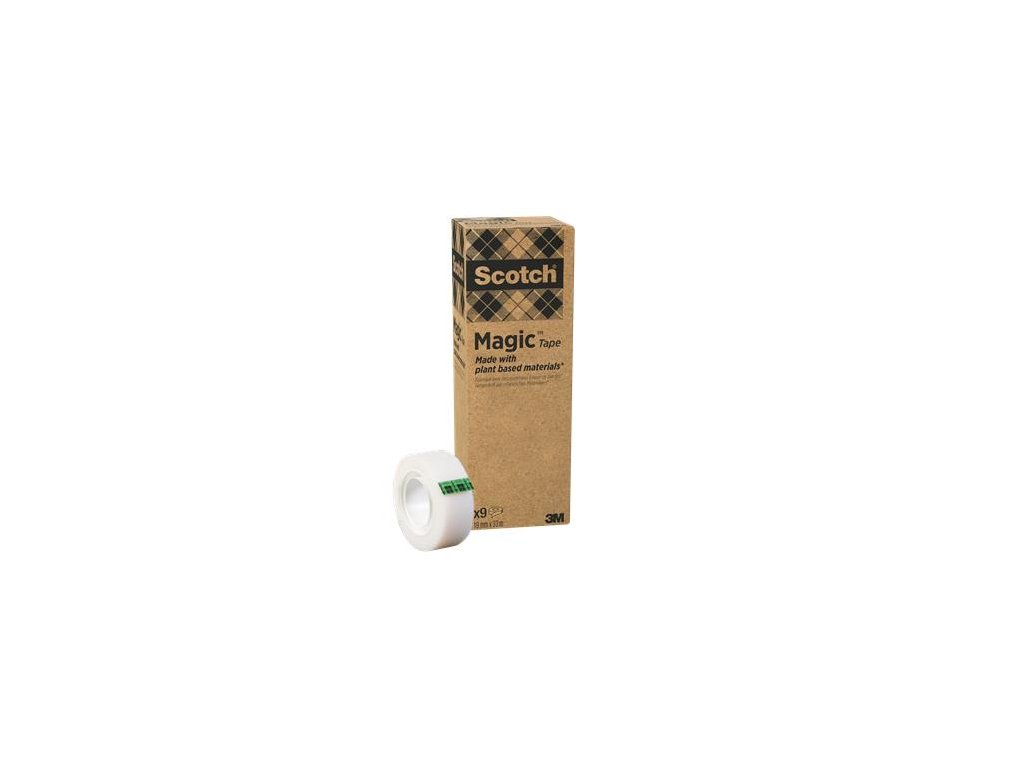 Ekologickejšia lepiaca páska Scotch® Magic™ je z 53 % obnoviteľných materiálov a má lepidlo na rastlinnej báze, 100 % recyk. kartónový obal a plastové jadro.Scotch® Magic™ lepiaca páska je po použití na väčšinu papierov neviditeľná. Skvelá na opravy a zlepenie dokumentov, pri skenovaní či kopírovaní.