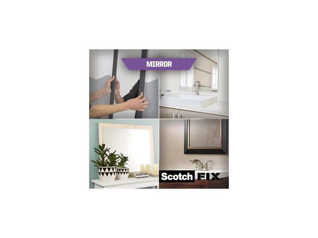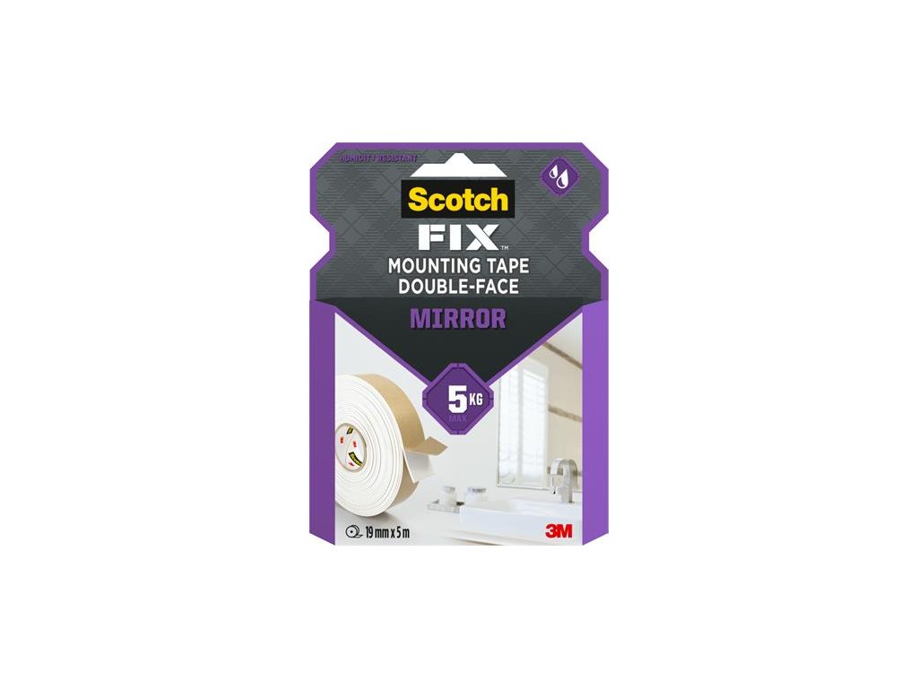 Montážna páska na zrkadlo Scotch-Fix™. Táto penová páska udrží až 5 kg a je ideálna na vnútorné použitie vo vlhkom prostredí, na zrkadlá, keramiku, dlaždice, hladké drevo, kov, sklo a maľované steny. Obojstranná montážna páska na zrkadlo Scotch-Fix™ je ideálna pre trvalú montáž zrkadiel a ďalších predmetov vo vlhkých interiéroch. Táto prispôsobivá obojstranná penová páska poskytuje rýchle a trvalé spojenie s vnútornými povrchmi vrátane maľovaných stien, kovu, dlaždíc, keramiky a väčšiny plastov. Jeho silná priľnavosť vďaka vysoko kvalitnému priemyselnému lepidlu 3M™ udrží až 5 kg bez použitia klincov alebo kladiva. Táto páska je odolná proti vlhkosti a je ideálna na diskrétnu montáž zrkadiel (vrátane bezrámových zrkadlových dlaždíc s kovovým podkladom) a ďalších predmetov vo vlhkých interiéroch, ako sú kúpeľne a kuchyne. Unesie až 5 kg, 1 kg/15 cm Ideálne pre montáž zrkadiel a ďalších predmetov vo vlhkom prostredí Už žiadne vŕtanie, pre mokré podmienky Teplotná odolnosť od 0°C do 70°C Určené pre: zrkadlá, keramické obklady, hladké drevo, kov, sklo a maľované steny Určené na vnútorné použitie vo vlhkom prostredí Nie je potrebné žiadne náradie 19mm x 5m Uistite sa, že je váš povrch hladký, čistý a suchý pre najlepšiu priľnavosť.Dodatočné parametre