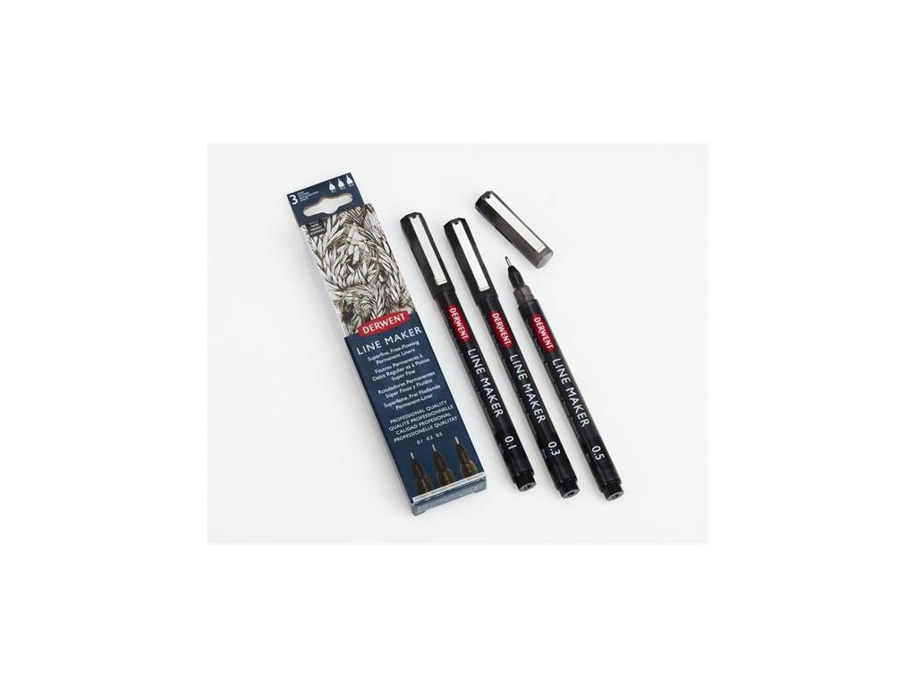 Liner, sada, 0,1/ 0,3/0,5 mm, DERWENT "Line Marker", čierny
