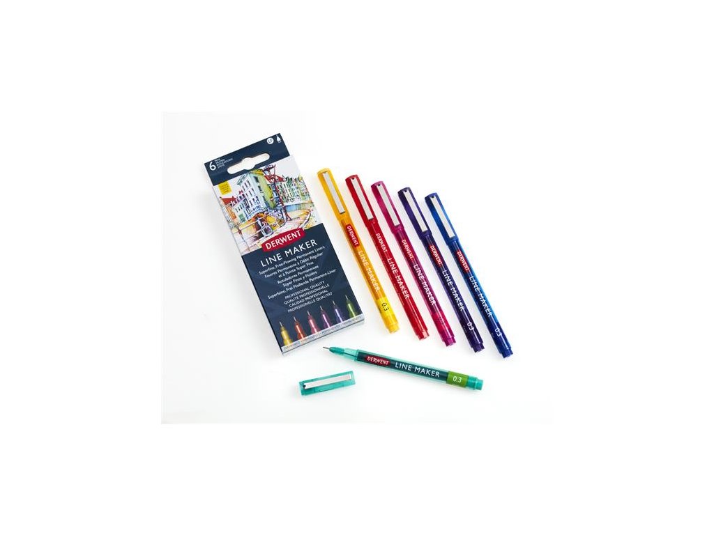 Liner, sada, 0,3 mm, DERWENT "Line Marker", 6 rôznych farieb