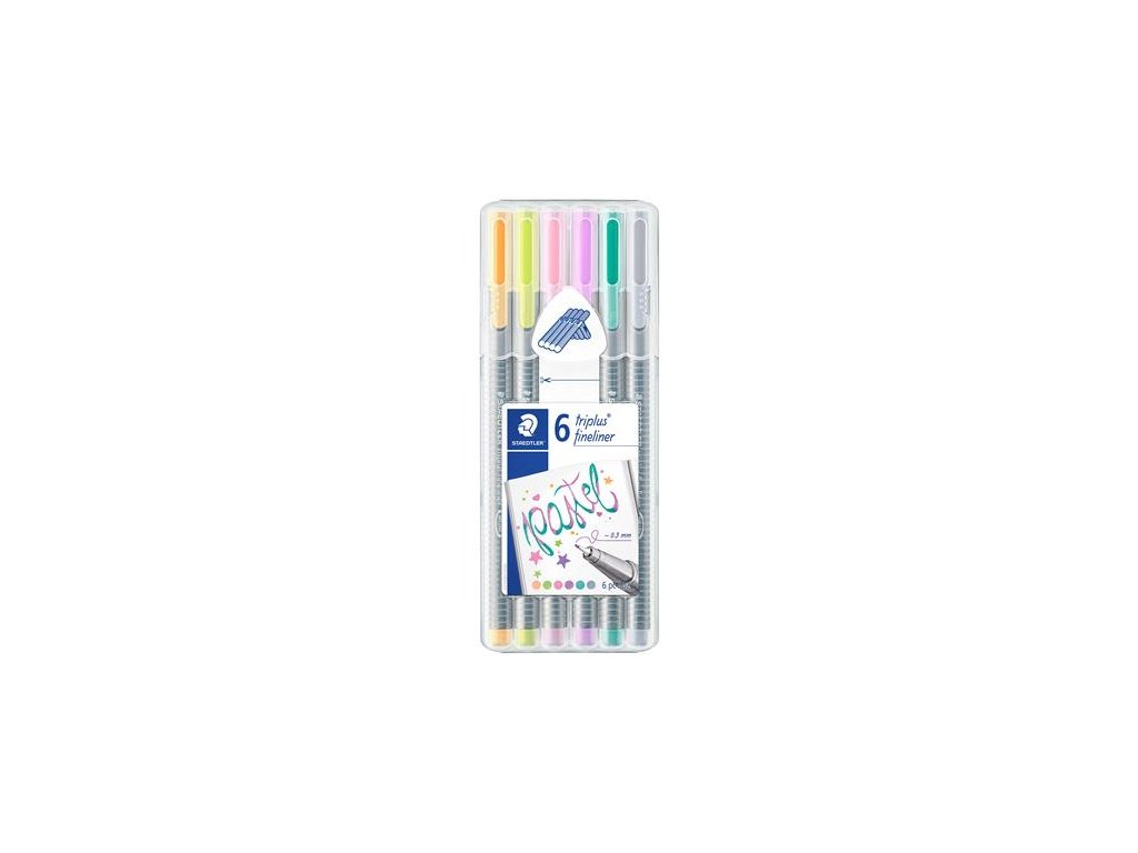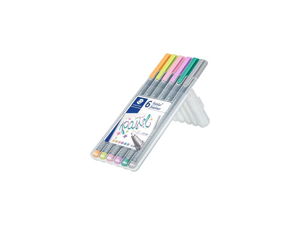 Liner, sada, 0,3 mm, STAEDTLER "Triplus Pastel 334", 6 pastelových farieb