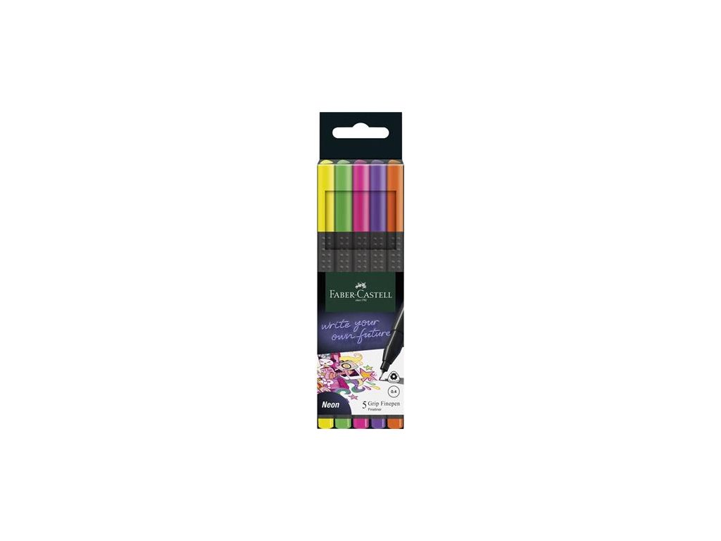 Liner, sada, 0,4 mm, FABER-CASTELL "Grip", 5 rôznych neónových farieb