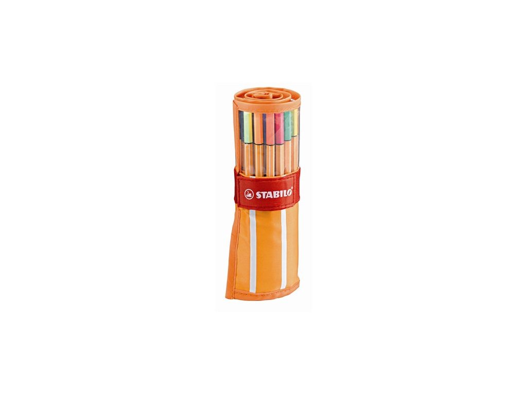 Liner, sada, 0,4 mm, rolovacie puzdro, neónové farby, STABILO "Point 88", 30 rôznych farieb