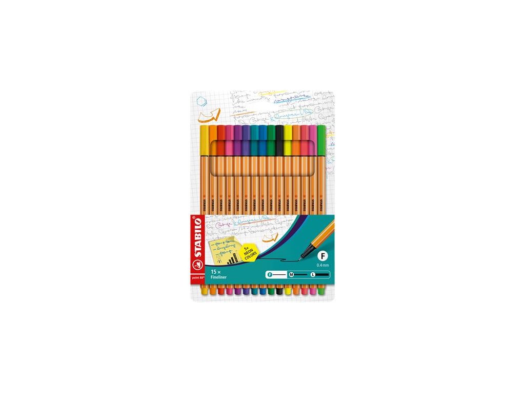 Liner, sada, 0,4 mm, STABILO "Point 88", 10+5 rôznych farieb
