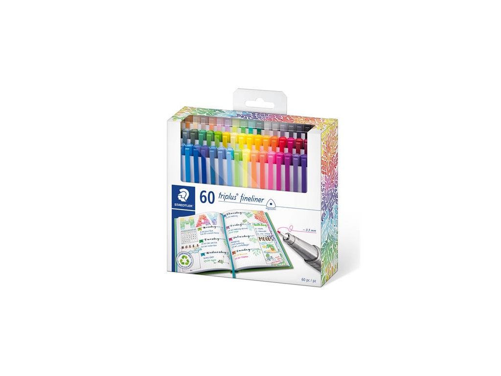 Liner, sada, 0,3 mm, STAEDTLER "Triplus 334", 60 rôznych farieb