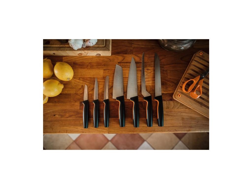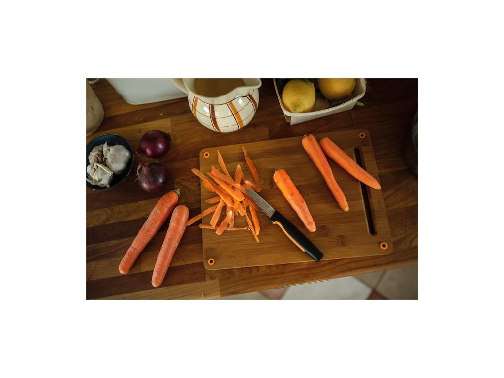 Lúpací nôž s rovnou čepeľou Fiskars Functional Form ™ je navrhnutý na pohodlné používanie a ľahkú údržbu Ideálny na lúpanie ovocia a zeleniny Odolná rovná čepeľ z japonskej nehrdzavejúcej ocele Ergonomická rukoväť s povrchom SoftGrip ™ v mieste uchopenia Hlboký chránič prstov zabezpečuje pohodlné a bezpečné držanie Možno umývať v umývačke riadu Dĺžka čepele 80 mm Tvrdosť čepele HRC 52 Vysoký rezací výkon (testované podľa metodiky CATRA) Navrhnuté vo FínskuDodatočné parametre
