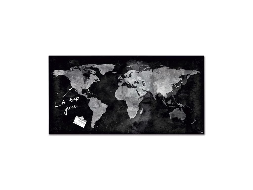 Magnetická sklenená tabuľa, Mapa sveta, 46x91 cm, SIGEL "Artverum® ", čierna