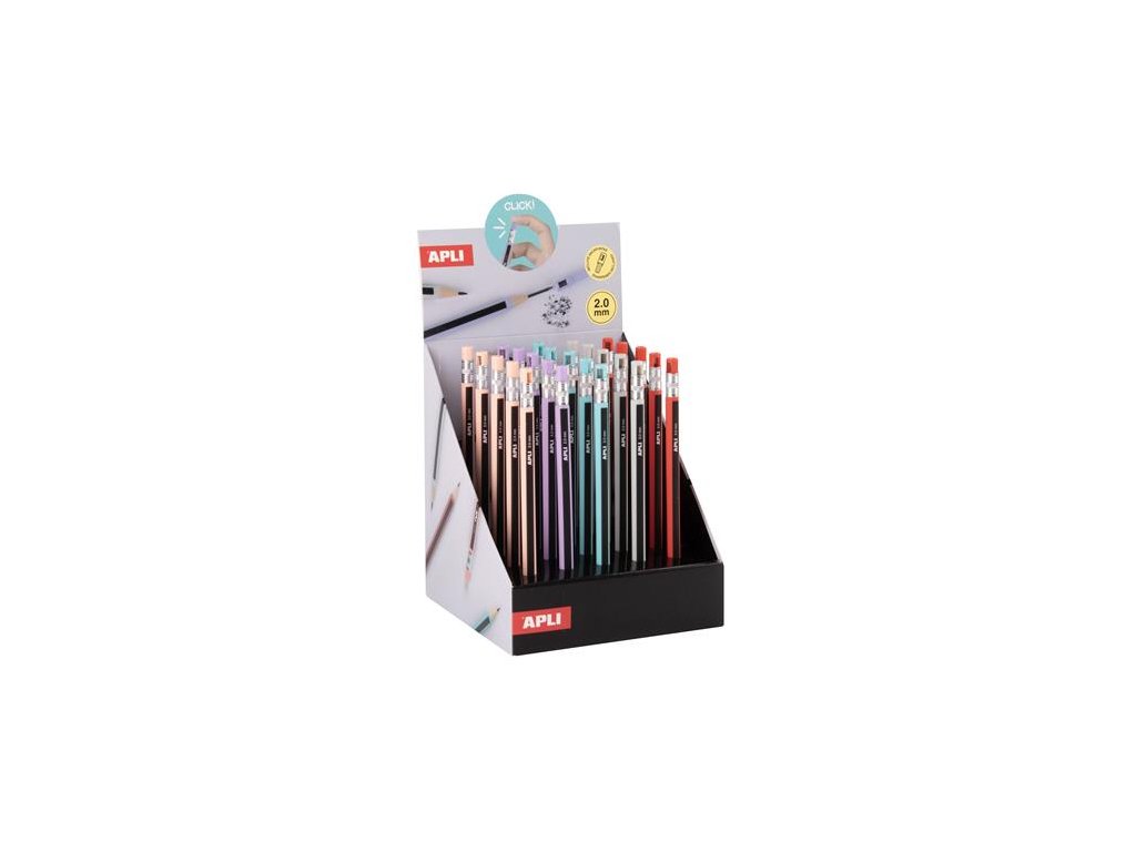 Mechanické ceruzky, displej, 2 mm, so strúhadlom, APLI, v rôznych farbách, 25 ks
