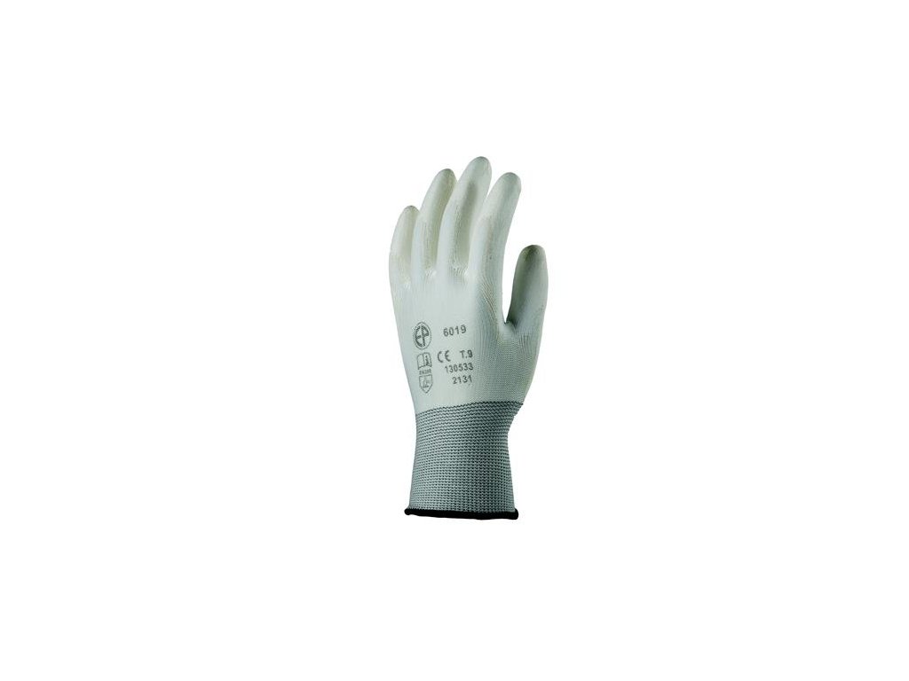 Montážne rukavice, biele, na dlani namočené do polyuretánu, veľkosť: 6