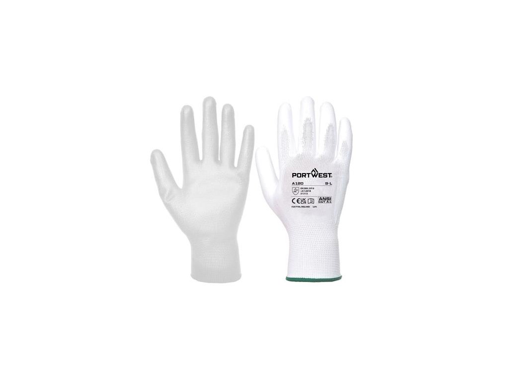Montážne rukavice, na dlani namočené do polyuretánu, veľkosť: 8, biele