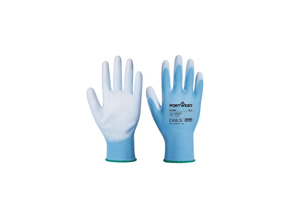 pletené, pružné polyesterové rukavice, na dlani namočené do polyuretánu, gumené manžety, s vetraním, rôzne farby a veľkostiDodatočné parametre
