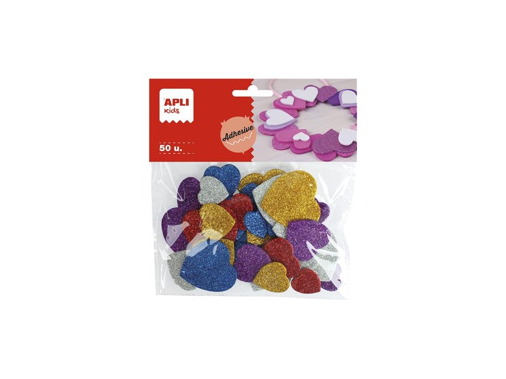 Moosguma, samolepiaca, glitrová, srdiečka, APLI Kids "Eva Sheets", mix farieb