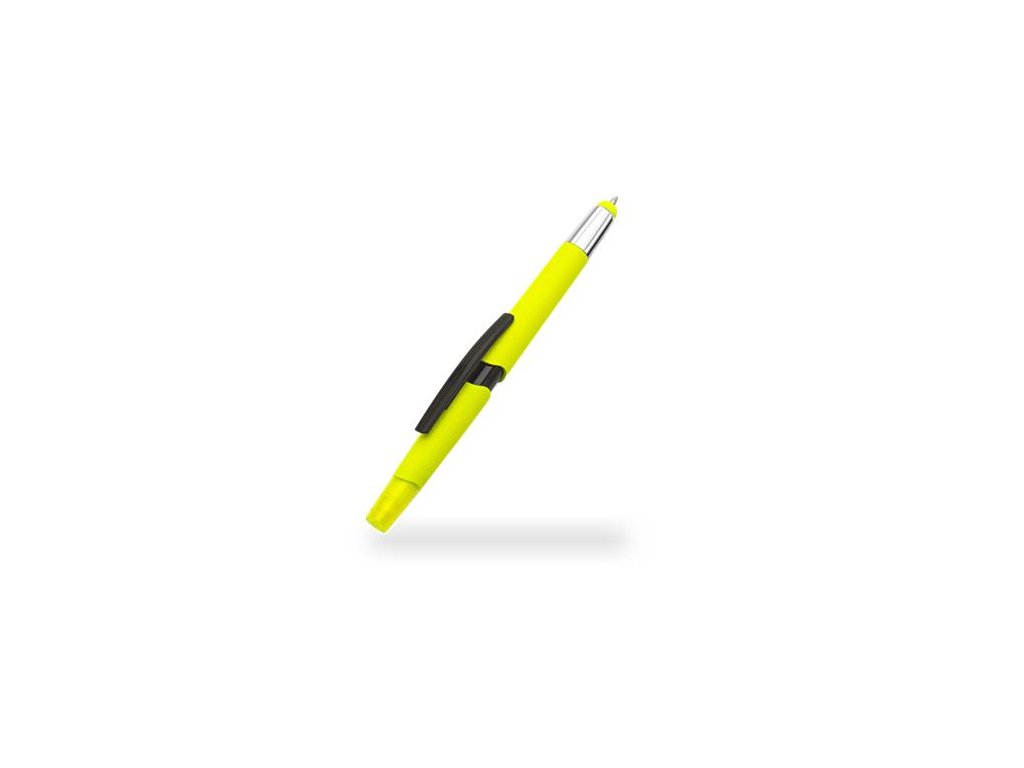 Multifunkčné pero! -1 telo viac funkcií -ideálne na dotykové displeje (koniec vrchnáku) -ideálne na písanie poznámok -ideálne na zvýraznenie podstatného obsahu -3 rôzne neónové farby (2 x neónovo žlté, 1 x neónovo zelené, 1 x neónovo oranžové) -farba atramentu guľôčkového pera: modrá -farba zvýrazňovača sa zhoduje s farbou tela pera -odolný klip -rozmery: 14 x 1,7 cmDodatočné parametre