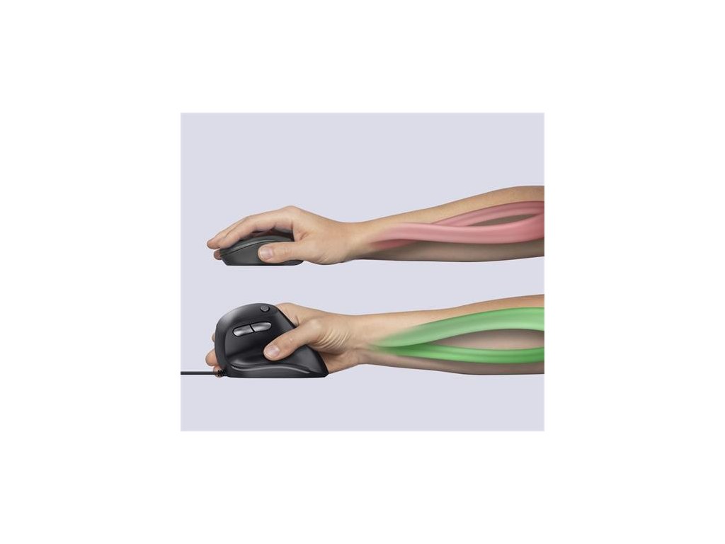 Vertikálna myš s ergonomickým dizajnom na zníženie namáhania rúk a zápästia.- pre pravákov