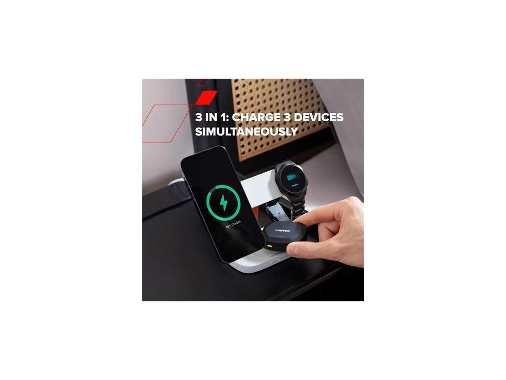 Hexagon WCS310 s funkciou 3 v 1 dokáže súčasne nabíjať tvoj telefón, inteligentné hodinky a slúchadlá bez neporiadku alebo zamotaných káblov. Príprava na deň alebo noc s plne nabitými zariadeniami nebola nikdy jednoduchšia. Či už nabíjaš telefón rýchlo, alebo ho necháš nabiť cez noc, táto nabíjačka spoľahlivo dodá energiu.