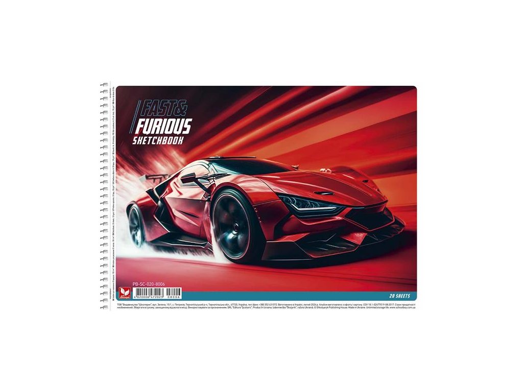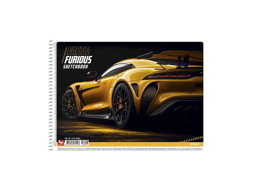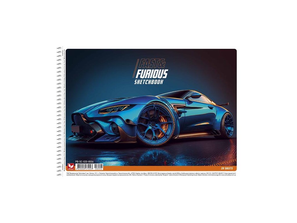 Náčrtník, špirálový, A4, 120 g, 20 listov, SHKOLYARYK "Fast&Furious"