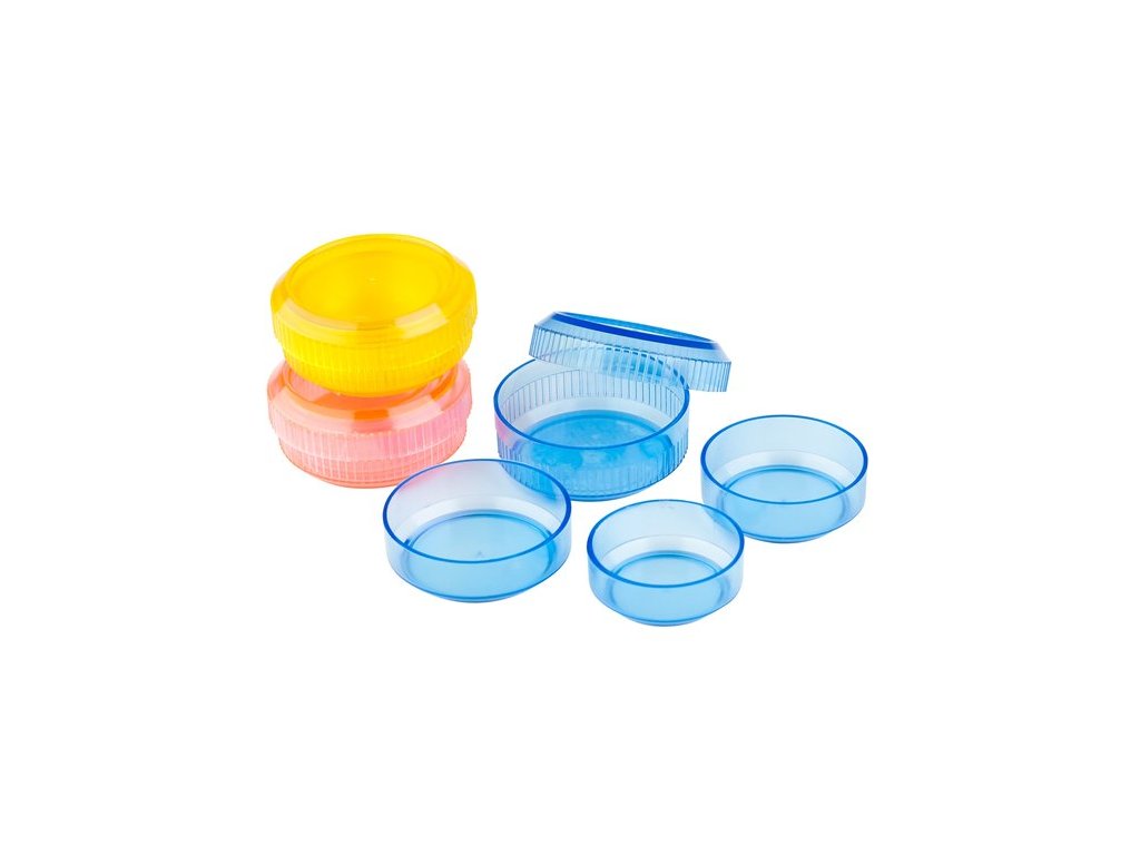 plastová nádobka na štetce v priehľadných farbách 5 ks sada priemer nádobiek: 58 mm, 53 mm, 48 mm, 43 mm priemer vrchnáku: 60 mm Značka: KOH-I-NOOR Výrobca: KOH-I-NOOR HARDTMUTH a.s. Adresa: F. A. Gerstnera 21/3, 370 01 České Budějovice Web: www.koh-i-noor.cz Email: post@ico.euDodatočné parametre
