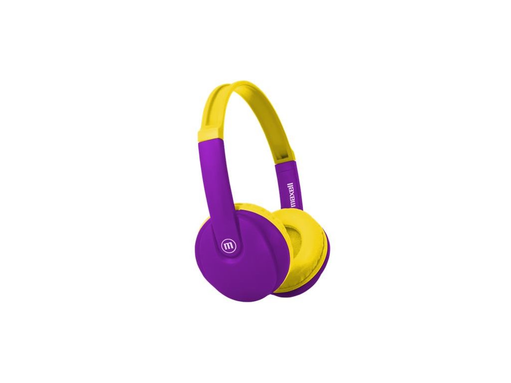 Náhlavné slúchadlá, detský rozmer, bezdrôtové, Bluetooth, s mikrofónom, MAXELL "HP-BT350", fialová-žltá