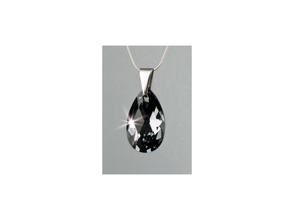 Náhrdelník, so SWAROVSKI® krištáľom, prívesok kvapka, Black Diamond, 16mm, ART CRYSTELLA