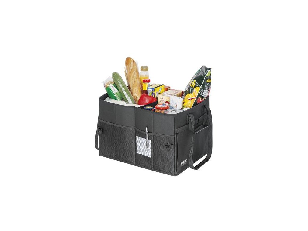 - zapadá do každého typu nákupných vozíkov - fixácia (v batožinovom priestore) so suchým zipsom - 2 dlhé a 2 krátke posilnené ušká - skladacia - vonkajšie a vnútorné vrecká - otvorená veľkosť: cca. 45 x 35 x 30 cm - nosnosť: 25 kg - materiál: odolný polyesterDodatočné parametre