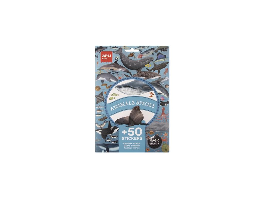 Nálepky, znova použiteľné, 50 ks, APLI Kids "Stickers", morské živočíchy