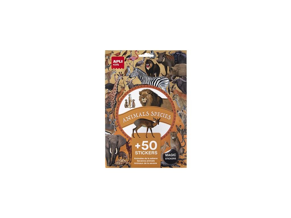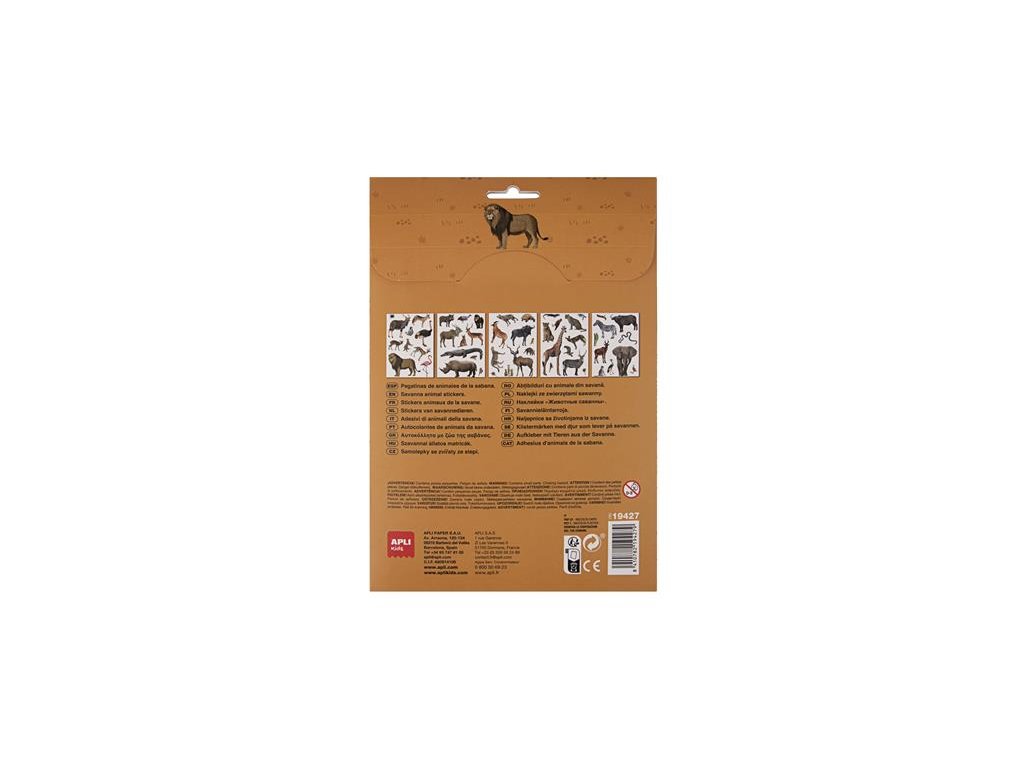 Nálepky, znova použiteľné, 50 ks, APLI Kids "Stickers", zvieratká zo savany