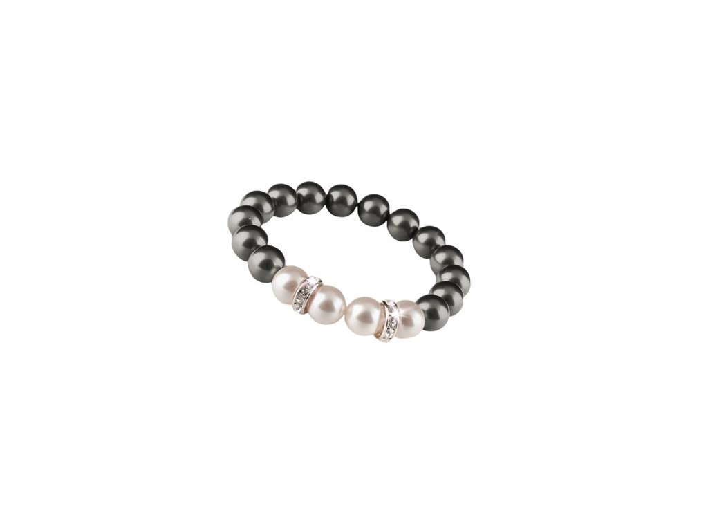 Náramok, z čierno-bielych SWAROVSKI® perál, s rondella krištáľom, 10 mm, ART CRYSTELLA® M