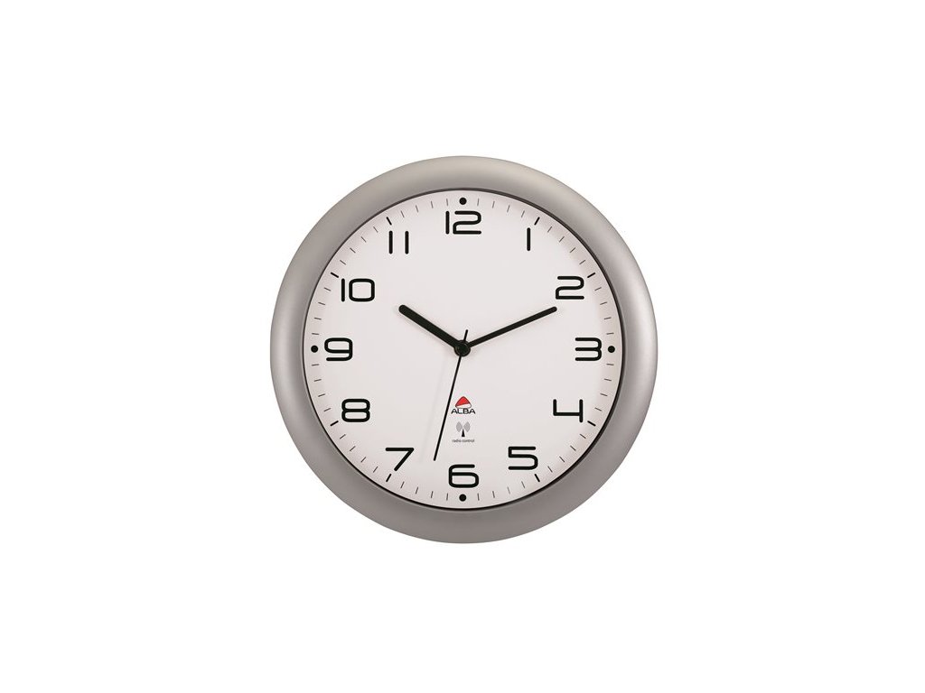 Nástenné hodiny, riadené rádiovým signálom, 30 cm, ALBA "Hornewrc", strieborná