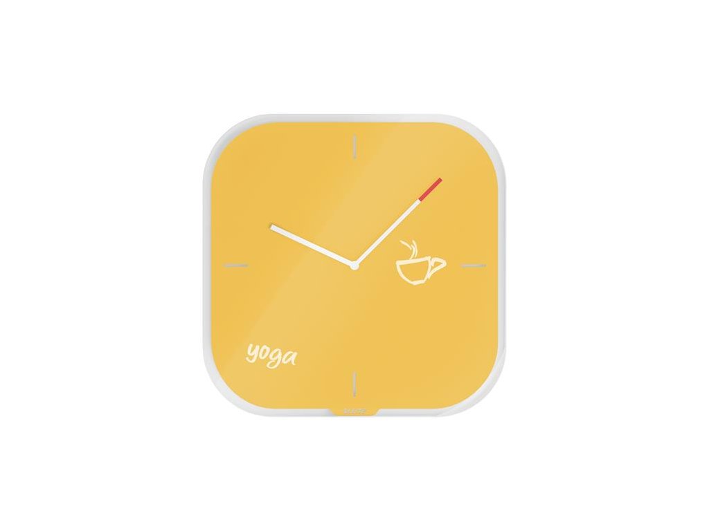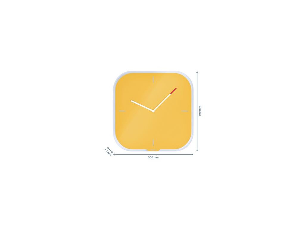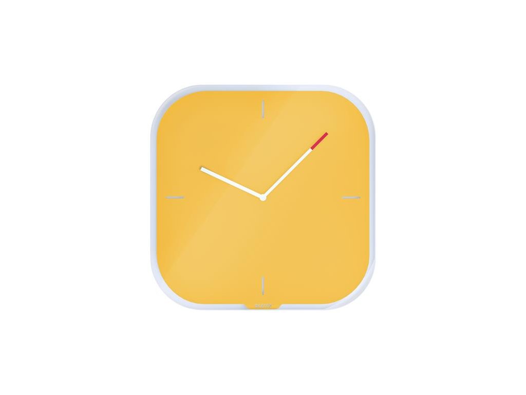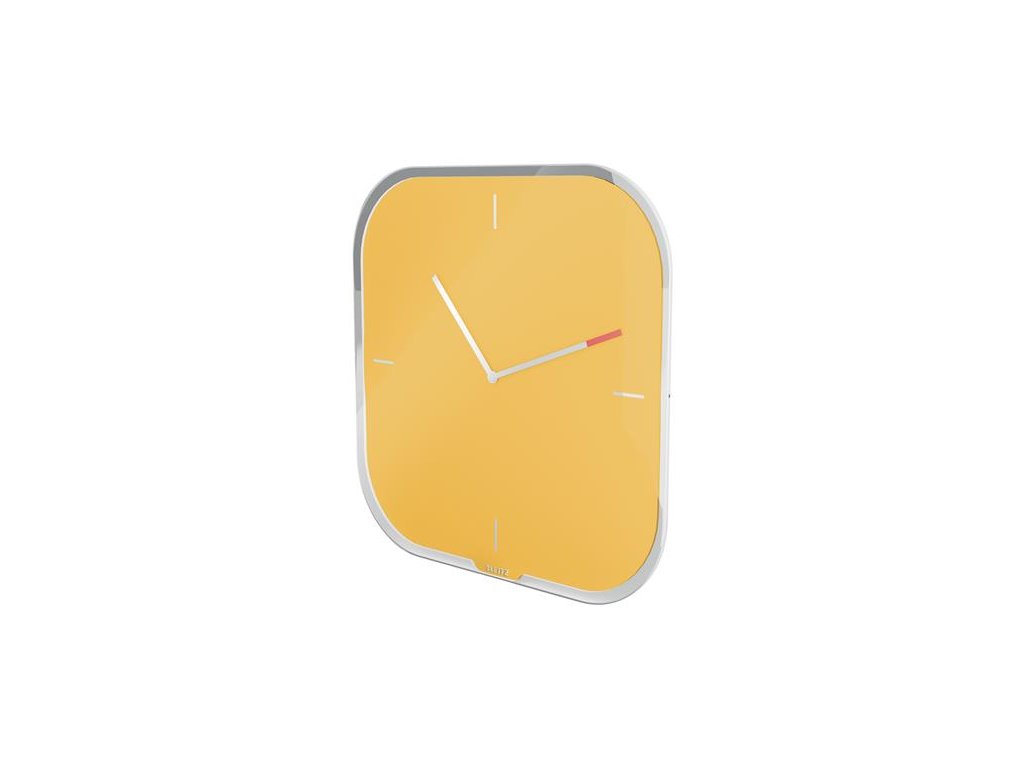Nástenné hodiny, sklenené, štvorcové, 30x30 cm, LEITZ "Cosy", teplá žltá