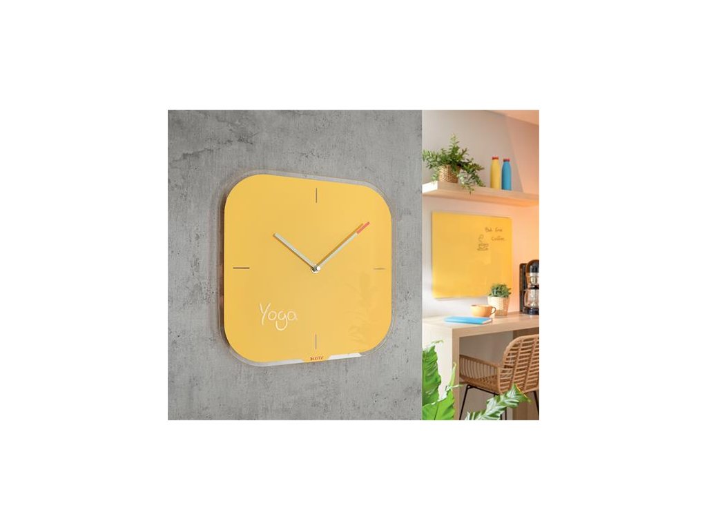 Produkty Leitz Cosy prinášajú vášmu pracovnému prostrediu štýl vďaka minimalistickému dizajnu, matnému povrchu a teplej farebnej škále Sklenené nástenné hodiny s perom pre zaznamenávanie schôdzok analógové hodiny Tichý quartz mechanizmus Rozmery: 30 x 30 x 4 cm Farba: teplá žltá Značka: LEITZ Výrobca: Esselte Kft. Adresa: 1139 Budapest, Lomb u. 37-39. A ép. II. 8., Hungary Web: https://www.accobrands.com/brands/ Email: hungarymarketing@acco.comDodatočné parametre