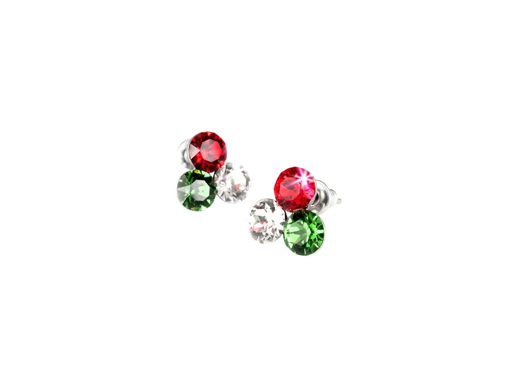 Náušnice, s červeno-bielo-zeleným SWAROVSKI® krištáľom, 11 mm, ART CRYSTELLA®