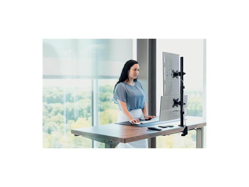 Vertikálne stohovacie rameno na dva monitory ponúka stabilné a bezpečné vertikálne umiestnenie dvoch monitorov. - každý pojme až 32" (maximálne 9 kg) monitor - dá sa ľahko nainštalovať pomocou C-svorky - dizajn s plným pohybom umožňuje umiestnenie monitora v ľubovoľnom smere - integrované vedenie káblov znižuje neporiadok - rýchle - Rukoväť na nastavenie výšky je v poriadku a umožňuje jednoduché nastavenie výšky monitora - odnímateľné platne VESA® 75/100 možno otočiť o ±180° pre orientáciu každého monitora na šírku alebo na výšku Značka: KENSINGTON Výrobca: Esselte Kft. Adresa: 1139 Budapest, Lomb u. 37-39. A ép. II. 8., Hungary Web: https://www.accobrands.com/brands/ Email: hungarymarketing@acco.comDodatočné parametre