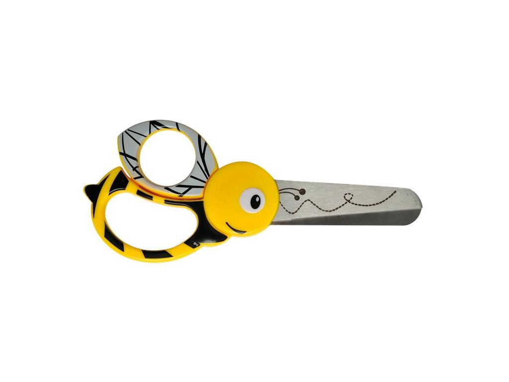 Krásne detské nožnice s dizajnom včely Výborne padnú do ruky Zaguľatené ostrie pre väčšiu bezpečnosť detí Pre pravákov aj ľavákov Vhodné pre deti od 5 rokov Dĺžka: 13 cmDodatočné parametre