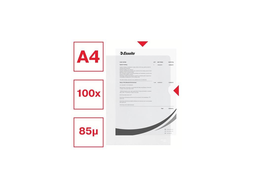 Obal "L", A4, 85 mikr., drsný povrsch, ESSELTE "Standard"