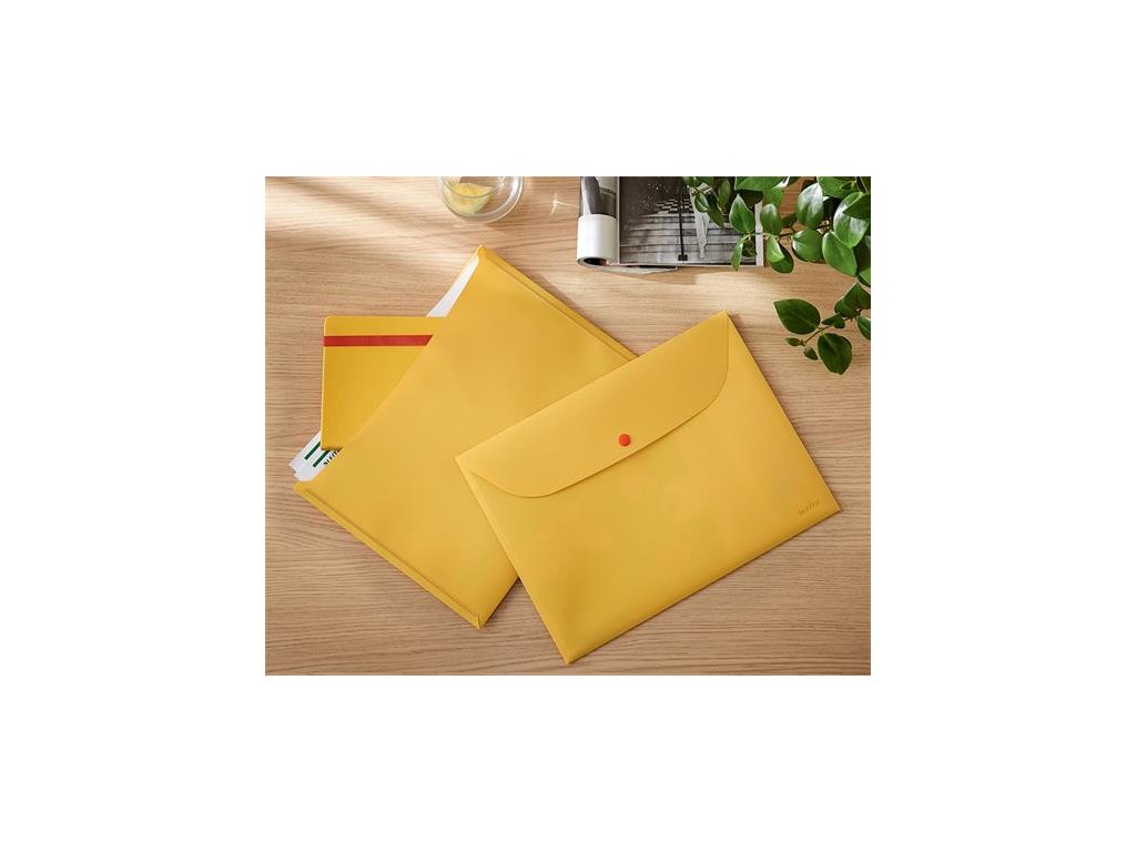 Produkty Leitz Cosy prinášajú vášmu pracovnému prostrediu štýl vďaka minimalistickému dizajnu, matnému povrchu a teplej farebnej škále Obaly na patent sú vyrobené z nepriehľadného, recyklovateľného PP materiálu s hrúbkou 0,20 mm pre vysokú nosnosť a dlhodobé použitie Ideálne na organizáciu a prepravu dokumentov obsahujúce citlivé dáta (do veľkosti A4) 1 vrecko s patentom, 1 vrecko otvorené - rýchlo prístupné Kapacita: 50 listov (80 g / m2) Farba: teplá žltá Značka: LEITZ Výrobca: Esselte Kft. Adresa: 1139 Budapest, Lomb u. 37-39. A ép. II. 8., Hungary Web: https://www.accobrands.com/brands/ Email: hungarymarketing@acco.comDodatočné parametre