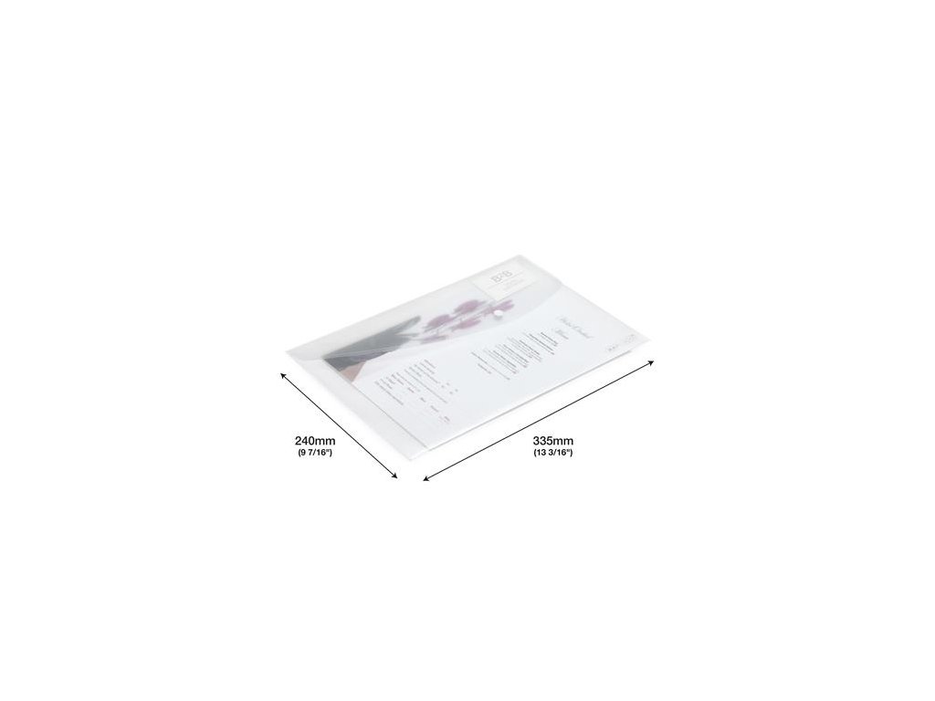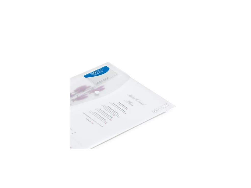 formát A4+ je ideálny v kancelárii, doma ale aj škole -pomocou predného držiaka na vizitku sa dá personalizovať-kapacita: 150 listov -držiak na pero pod obálkou -rozmery: 335 x 240 mm (š x v) -priehľadnýZnačka: RAPESCO