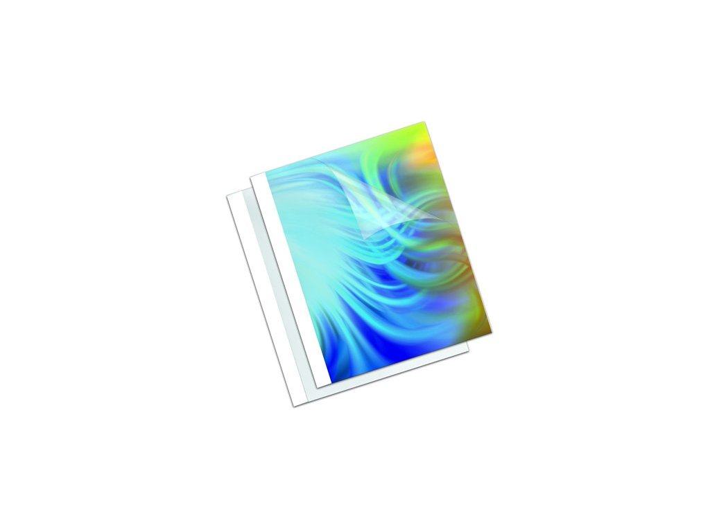 priehľadná predná strana, 150 mikr. matná, biela, 170 g/m2 zadná strana z hrubého kartónu balenie: 20 ks/krabica hrúbka chrbta: 1,5 mm kapacita (80 g): 1-10 listovDodatočné parametre