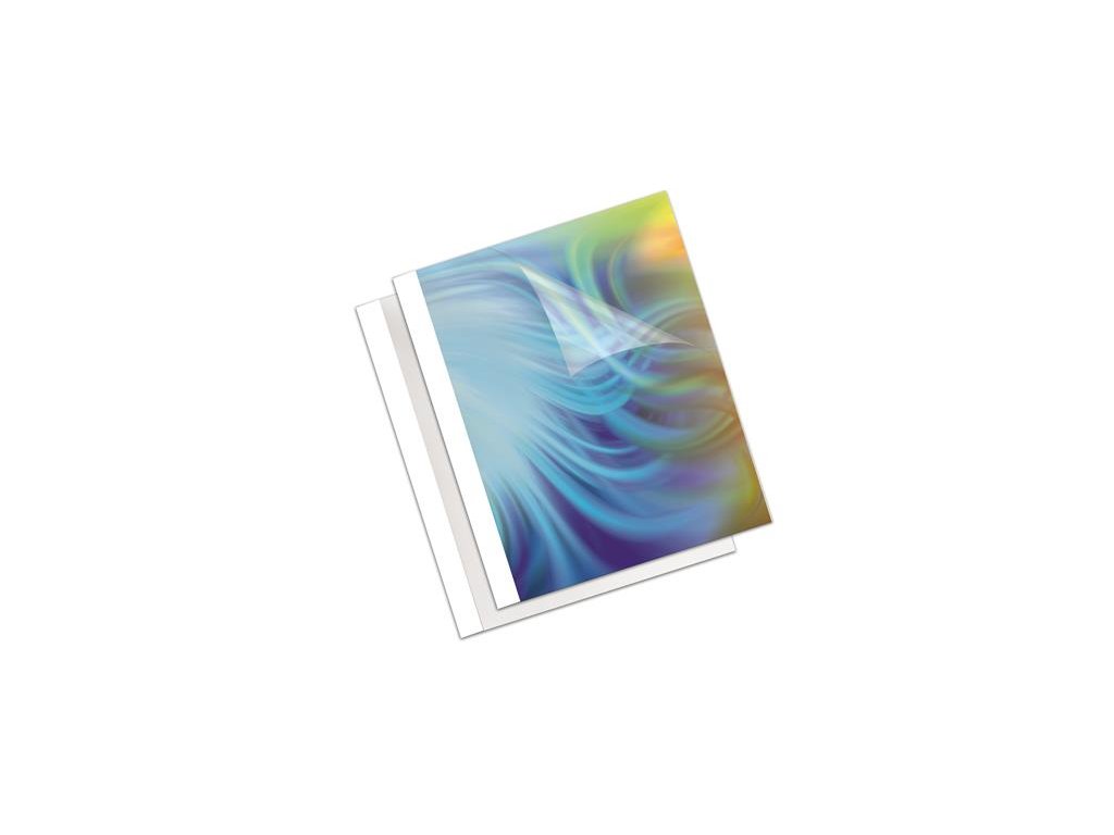 priehľadná predná strana, 150 mikr. matná, biela, 170 g/m2 zadná strana z hrubého kartónu balenie: 20 ks/krabica hrúbka chrbta: 3 mm kapacita (80 g): 11-32 listovDodatočné parametre
