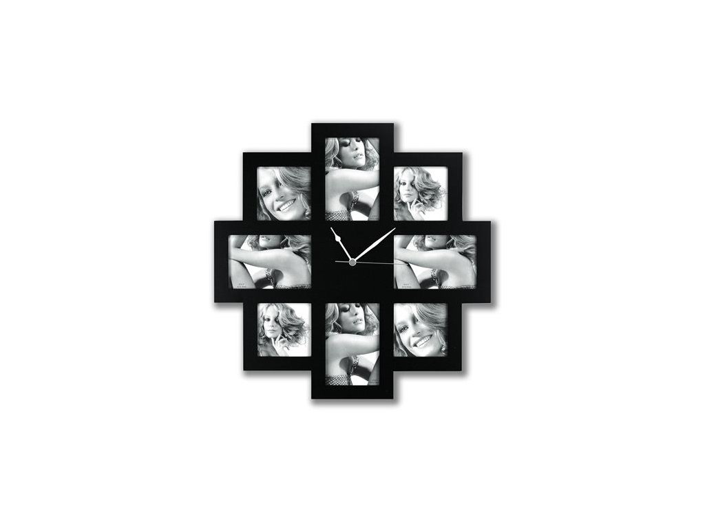 Obrazový rám, plastový, 4 ks 10x15 cm, 4 ks 10x10 cm, s hodinami, "Zep Taranto", čierna