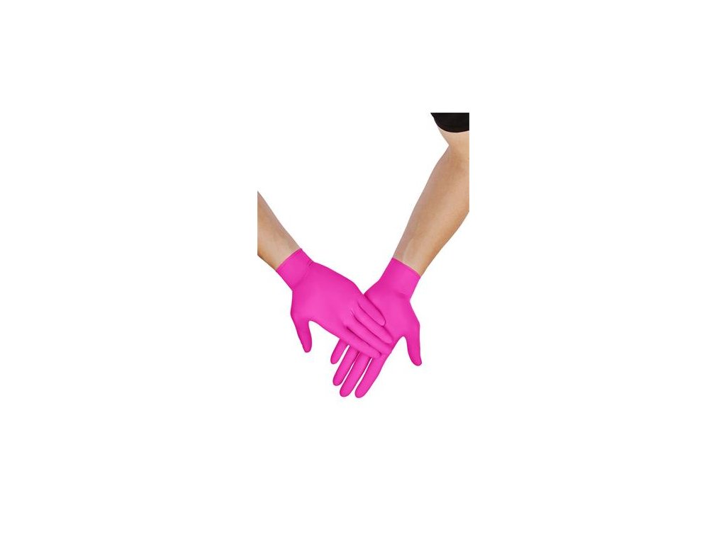 Ochranné rukavice, jednorazové, nitril, veľkosť L, 100 ks, nepudrované, magenta