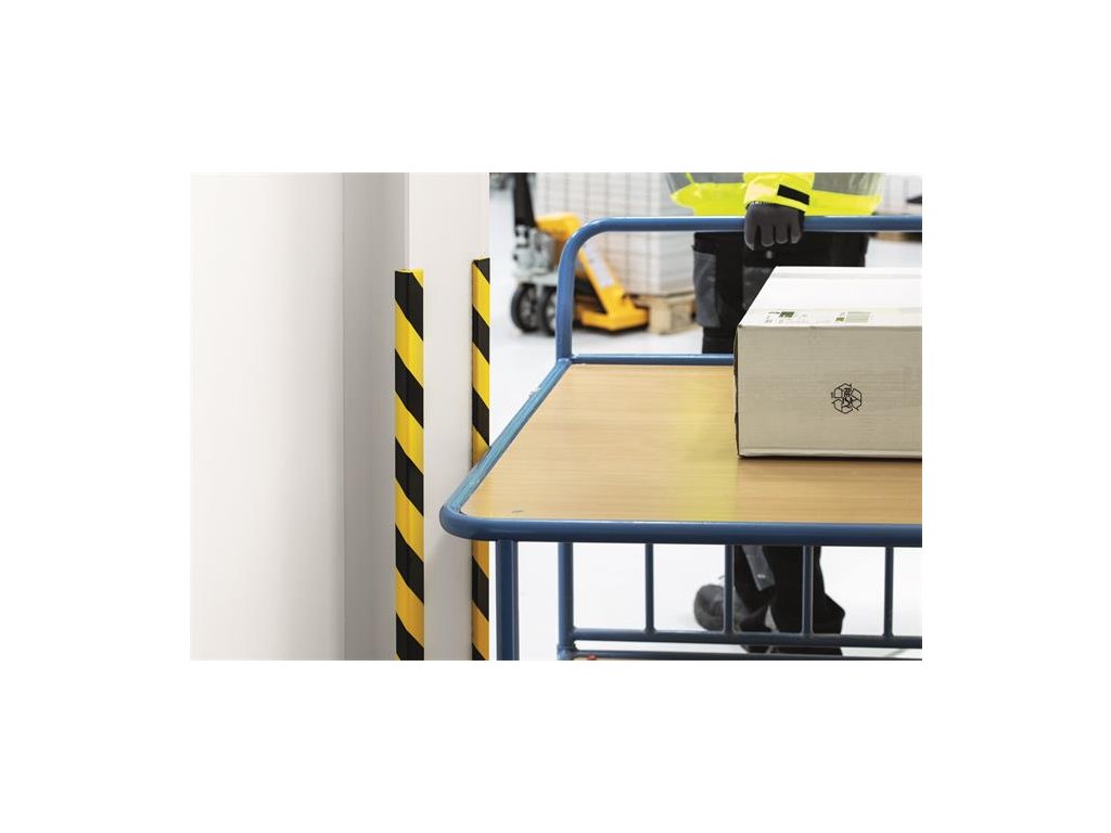 Samolepiaci, flexibilný profil na ochranu hrán z polyuretánovej peny - pre vnútorné použitie - ideálny na pripevnenie na police, hrany, T-nosníky atď. vo výrobe, možno použiť v dopravných oddeleniach a skladoch, pivniciach, schodiskách a garážach -označuje nebezpečné miesta, zmierňuje zranenia spôsobené kolíziami a zabraňuje poškodeniu vozidiel a prepravných vozíkov -profily je možné skrátiť na požadovanú dĺžku ostrým nožom - výrobok má farbu ASR A1 .3 sú použité farby, ktoré zodpovedajú farbám RAL 1004/9003 (indikátor žltý/indikátor čierny) - trieda požiarnej odolnosti E podľa normy DIN EN 13501-1 - tepelná odolnosť od -30°C do + 70°C - dĺžka profilu 1 m -šírka výrezu: 8 mmDodatočné parametre