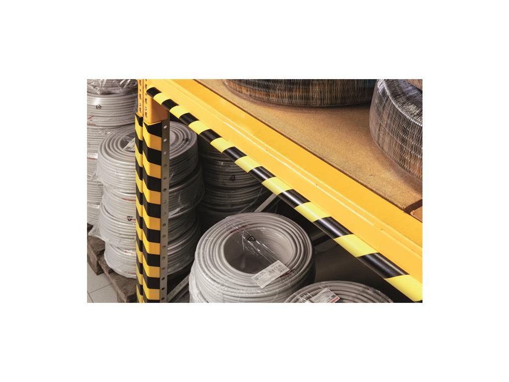 Samolepiaci flexibilný rohový ochranný profil z polyuretánovej peny - pre vnútorné použitie - poskytuje ideálne riešenie vo výrobných priestoroch, dopravných oddeleniach a skladoch, pivniciach, schodiskách, garážach, stenách, trámoch, regáloch a skriniach, ako aj strojoch, skladoch vozíky atď. -označuje nebezpečné miesta, chráni povrchy, steny a zmierňuje poškodenia spôsobené nárazom -profily je možné skrátiť na požadovanú dĺžku ostrým nožom -na výrobku používame farby podľa ASR A1.3, ktoré zodpovedajú RAL 1004/9003 farby (označovač žltý/ popisovač čierny) - trieda E požiarna odolnosť podľa normy DIN EN 13501-1 - tepelná odolnosť od -30°C do + 70°C - dĺžka profilu 1 m - lepiaca plocha: 25 mm na oboch stranáchDodatočné parametre