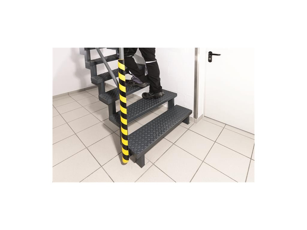 Samolepiaci, flexibilný ochranný profil potrubia z polyuretánovej peny -pre vnútorné použitie -vhodný pre potrubia alebo káble s priemerom 20mm - 40mm, ktoré sa z konštrukčných dôvodov umiestňujú v blízkosti chodníkov -ideálne riešenie vo výrobe, preprave a skladoch , schodiskové priestory alebo úzke miestnosti, ako sú pivnice alebo garáže, kde sú nízke priechody atď. -označuje nebezpečné miesta, chráni potrubia a vodiče a zmierňuje škody spôsobené nárazom -profily je možné skrátiť na požadovanú dĺžku ostrým nožom -na výrobku používame farby podľa ASR A1.3, ktoré zodpovedajú RAL 1004/9003 farby (označovač žltý / popisovač čierny) - trieda E požiarna odolnosť podľa normy DIN EN 13501-1 - tepelná odolnosť od -30°C do + 70°C - dĺžka profilu 1 m - vnútorný priemer: 30 mmDodatočné parametre