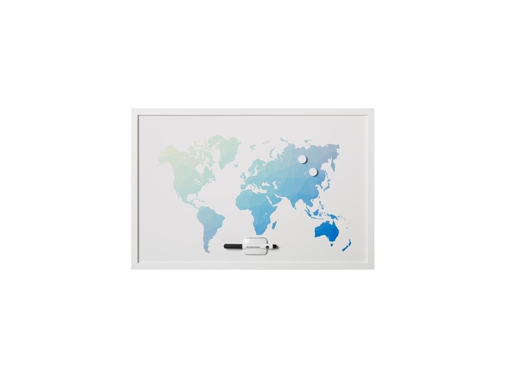 Odkazová tabuľa, magnetická, 60x40 cm, biely drevený rám, VICTORIA VISUAL, "Mapa sveta"