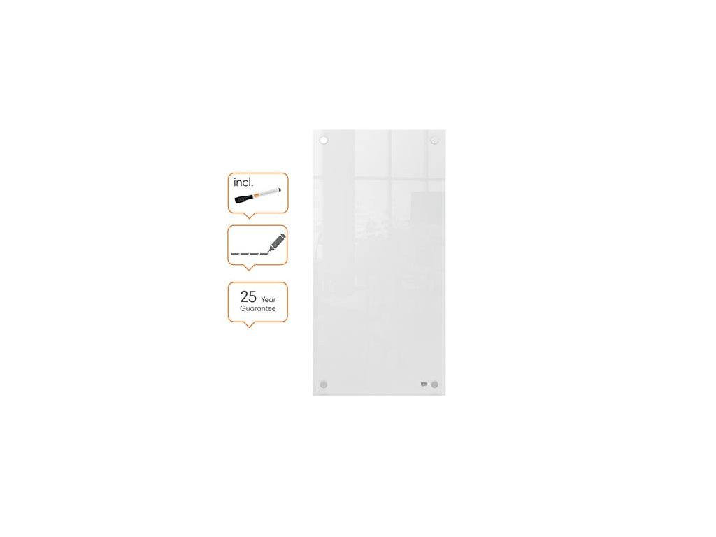 Odkazová tabuľa, sklenená, nástenná, úzka, 30x60 cm, NOBO "Home", biela