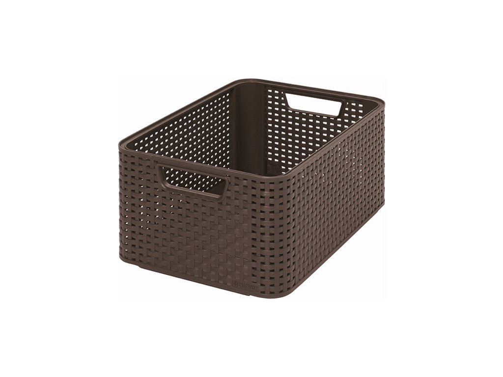 Odkladací box, s efektom rattanu, 18l, tmavohnedá, CURVER "Style M"